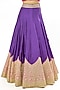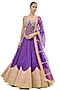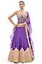 Featuring a purple lehenga crafted in tussar, adorned with the ageless craftsmanship of intricate embroidery, scalloped edges, and motifs. It is paired with an embroidered tussar blouse and an organza embellished dupatta. Style this designer lehenga set look with kundan jewellery, chic clutch, and wedges for the perfect engagement or wedding outfit.