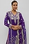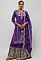 Featuring a purple straight kurta in tussar base with embroidery. It is paired with embroidered sharara pants and an organza dupatta having dori and sequins boota work. Accentuate it with statement jewellery and heels for a wedding or sangeet ceremony.