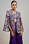 Gopi Vaid features a mesmerizing Purple Blazer that captivates with its elegance. The eye-catching piece is crafted in tussar with resham work. Accessorize the designer blazer with statement jewellery and heels for festive occasions.