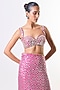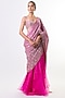Featuring a rani pink saree in organza and chiffon base with embroidery. It is paired with a tussar blouse having a scoop neckline and embellishment. Accentuate it with statement chandbalis, a sleek low bun and embellished heels for a regal ensemble, ideal for wedding festivities, sangeet nights or engagement celebrations.