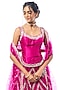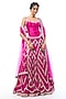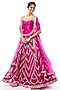 Featuring a rani pink lehenga in organza base with mirror embroidery. It is paired with a tussar blouse and a net dupatta. Accentuate the designer lehenga with zircon jewellery and embellished heels for a wedding, engagement or sangeet ceremony.