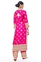 Featuring a rani pink kurta in tussar base with embellishments. It is paired with palazzo pants and an organza dupatta. Accentuate it with kundan polki jewellery and block heels for a wedding or sangeet ceremony.