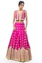 Featuring a rani pink lehenga in tussar base with thread and sequins work. It is paired with an embroidered bralette and an embroidered jacket. Accentuate the designer lehenga with zircon jewellery and embellished heels for a bridal look, Perfect wear for your wedding, engagement or sangeet ceremony.
