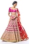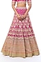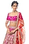 Featuring a rani pink lehenga in tussar base with thread work. It is paired with a tussar embroidered blouse and an organza dupatta. Accentuate the designer lehenga with kundan polki jewellery and embellished heels for a bridal look, Perfect wear for your wedding, engagement or sangeet ceremony.