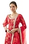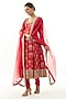 Featuring a red kurta in cotton silk base with embellishments. It is paired with lycra churidar pants and an organza dupatta. Accentuate it with statement jewellery and embellished heels for festive occasions or wedding ceremonies.