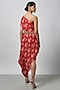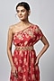 Featuring a red one-shoulder gown in cotton silk base with floral detail. It is paired with a belt. Accentuate it with statement jewellery and heels for a cocktail or sangeet ceremony.
