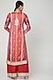 Featuring a red kurta in cotton silk base with delicate gold sequins and thread embroidery. It is paired with matching deep toned palazzo pants and a yellow organza dupatta.
