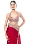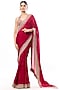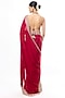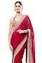 Featuring a red saree in georgette base with mirror embroidery. It is paired with a tussar embroidered sleeveless blouse. Accentuate it with statement earrings and elegant heels for a stylish ensemble, ideal for festive gatherings, sangeet or refined celebrations.