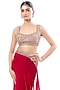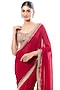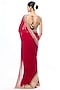 Featuring a red saree in georgette base with mirror embroidery. It is paired with a tussar embroidered sleeveless blouse. Accentuate it with statement earrings and elegant heels for a stylish ensemble, ideal for festive gatherings, sangeet or refined celebrations.