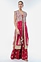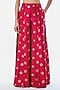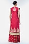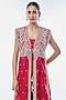 Featuring a red sleeveless jacket-style kurta in tussar base with embroidery and tasseled tie-up detail. It is paired with wide-legged pants and a blouse. Accentuate it with dangler earrings and embellished heels for a festive occasion, wedding, sangeet or engagement ceremony.