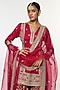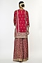 Featuring a red straight-cut kurta in tussar base with embroidery. It is paired with flared sharara pants and an organza dupatta. Style this set with chandbali earrings, juttis and a clutch for weddings, festive celebrations or traditional family gatherings.