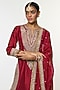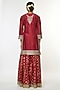 Featuring a red straight-cut kurta in tussar base with embroidery. It is paired with flowy sharara pants and a banarasi organza dupatta. Style this set with chandbali earrings, juttis and a clutch for weddings, festive celebrations or traditional family gatherings.