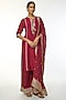 Featuring a red straight-cut in tussar base with embroidery. It is paired with linen satin palazzo pants and an organza dupatta having motif embellishments. Style this set with chandbali earrings, juttis and a clutch for weddings, festive celebrations or traditional family gatherings.