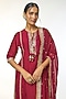 Red Tussar Embroidered Straight-Cut Kurta Set