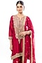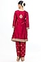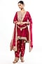 Red Tussar Motif Embroidered Asymmetrical Kurta Set