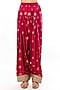 Featuring a red asymmetrical kurta in tussar base with motif embroidery. It is paired with farshi salwar pants and a banarasi dupatta. Accentuate it with statement earrings and elegant heels for a stylish ensemble, ideal for festive gatherings, sangeet or refined celebrations.