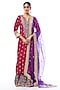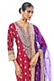 Featuring a red straight kurta in tussar base with motifs work. It is paired with silk crinkled sharara pants and an organza dupatta. Accentuate it with statement jewellery and heels for a festive occasion, wedding, sangeet or engagement ceremony.