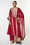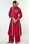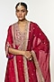 Featuring a red straight-cut in tussar base with thread embroidery. It is paired with linen satin palazzo pants and an organza dupatta having motif embellishments. Style this set with chandbali earrings, juttis and a clutch for weddings, festive celebrations or traditional family gatherings.