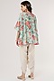 Featuring a sky blue kaftan in viscose base with bloom print. It is paired with contrasting cotton dhoti pants.