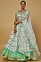 Featuring a white lehenga in georgette base with embroidery. It is paired with a matching blouse having foil and sequins embroidery and a chiffon dupatta.