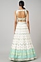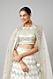 Featuring a white lehenga in organza base with ikat print, sequins, foil, and motif embroidery. It is paired with a matching georgette blouse and a chiffon dupatta.