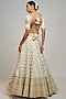 Gopi Vaid features a mesmerizing White Lehenga Set that captivates with its elegance. The eye-catching lehenga is crafted in tussar with gold zardosi embellishments. It is paired with a blouse and an organza dupatta. Accessorize the designer lehenga set with statement jewellery and heels for a bridal look.