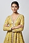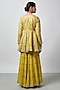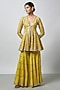 Featuring a yellow peplum kurta in tussar base with mirror work and embroidery. It is paired with chiffon sharara pants having ruffle detail and embellishment. Accentuate it with statement jewellery and heels for any festive occasion or haldi ceremony.