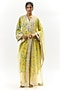 Featuring a yellow kurta in cotton silk base with floral print and embroidery. It is paired with cotton palazzo pants and a net dupatta. Accentuate with statement earrings and heels for a festive occasion.