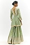 Featuring a yellow peplum kurta in cotton silk base with mirror work and embroidery. It is paired with embroidered sharara pants and a net dupatta. Accentuate with statement earrings and heels for a festive occasion or sangeet ceremony.