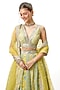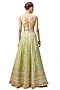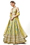 Featuring a yellow flared lehenga in cotton silk base with floral motif embroidery. It is paired with a cotton silk embroidered blouse having a v-neckline a net tikki embroidered dupatta. Accentuate the designer lehenga with polki jewellery, embellished heels and a potli bag for a wedding or haldi ceremony.