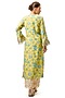 Yellow Cotton Silk Floral Printed & Embroidered Kurta