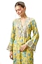 Featuring a yellow kurta in cotton silk base with floral print and embroidery, including a v-neckline. Accentuate it with pants, dangler earrings and heels for a festive occasion.