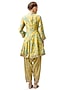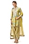 Featuring a yellow kurta in cotton silk base with floral print and embroidery. It is paired with salwar pants and a net tikki dupatta. Accentuate it with dangler earrings and heels for a festive occasion or pooja ceremony.