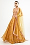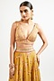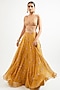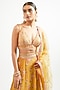 Featuring a yellow lehenga in cotton silk base with floral print, thread hand and machine embroidery. It is paired with an embroidered blouse and a net dupatta. Accentuate it with minimal jewellery and heels for a wedding, sangeet or engagement ceremony.