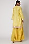 Featuring a yellow kurta in chanderi base with gota and thread work embroidery. It is paired with matching sharara pants in cotton base and a kota dupatta.