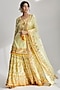 Featuring a yellow kurta in viscose base with pompoms, sequins, mirror hand and machine embroidery. It is paired with georgette sharara pants and an organza dupatta. Style this sharara set with heels and dangler earrings for any haldi or festive look.