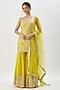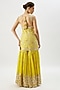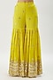 Featuring a yellow kurta in tussar base with mirror and floral embroidery. It is paired with georgette flowy sharara pants and a net tikki dupatta. Complete your festive or haldi look with dangler earrings and elegant heels.