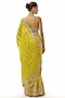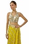 Featuring a yellow saree in georgette base with mirror hand embroidery. It is paired with a tussar embroidered halter-neck blouse. Accentuate with statement jewellery and juttis for festive occasion, cocktail or haldi ceremony.