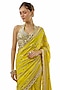 Yellow Georgette Mirror Hand Embroidered Saree Set