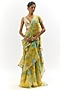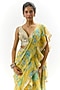 Featuring a yellow saree in georgette and organza base with floral embroidery. It is paired with an embroidered cotton silk blouse. Accentuate it with statement jewellery and heels for a wedding or engagement ceremony.