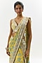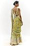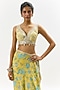 Featuring a yellow sharara saree in georgette base with mirror and sequins embroidery. It is paired with an embroidered blouse. Accentuate with statement earrings and heels for a festive occasion or sangeet ceremony.