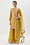 Featuring a yellow kurta in cotton silk base with floral print, sequins, and thread embroidery. It is paired with georgette sharara pants and a net dupatta. Complete your festive or haldi look with dangler earrings and elegant heels.