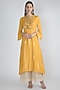 Featuring a yellow kurta in cotton silk base with mirror, zardosi and gota embroidery. It has stripe print, thread tassels and tie-up drawstrings.
