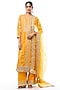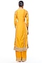 Featuring a yellow straight kurta in tussar base with threadwork and embroidery. It is paired with linen satin palazzo pants and a sheer organza embroidered dupatta. Accentuate it with statement jewellery and heels for a festive occasion, haldi, wedding or engagement ceremony.