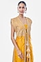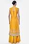 Featuring a yellow sleeveless jacket-style kurta in tussar base with embroidery and tasseled tie-up detail. It is paired with wide-legged pants and a blouse. Accentuate it with dangler earrings and embellished heels for a festive occasion, haldi, sangeet or engagement ceremony.