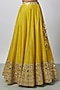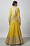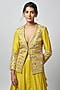 Featuring a yellow blazer in tussar base with mirror work and embroidery. It is paired with an embroidered lehenga. Accentuate it with statement earrings and heels for a festive occasion or sangeet ceremony.