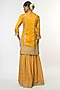 Featuring a yellow straight-cut kurta in tussar base with embroidery. It is paired with flowy sharara pants and an organza dupatta. Style this set with chandbali earrings, juttis and a clutch for weddings, festive celebrations or traditional family gatherings.