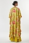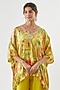 Featuring a yellow flowy top in satin base with floral print. It is paired with tussar flared pants. Complete your festive or haldi look with dangler earrings and elegant heels.