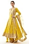 Yellow Tussar Mirror Embroidered Anarkali Set