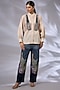 Featuring a beige bloom shirt in wind textile base with hand embroidery and wrinkle-free properties. Style with jeans and neutral heels, ideal for casual wear.